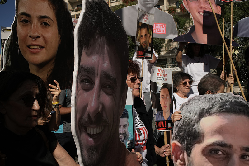 以色列人民展示了被拘留者的照片,而党派10 月 7 日的抗议活动受到影响。